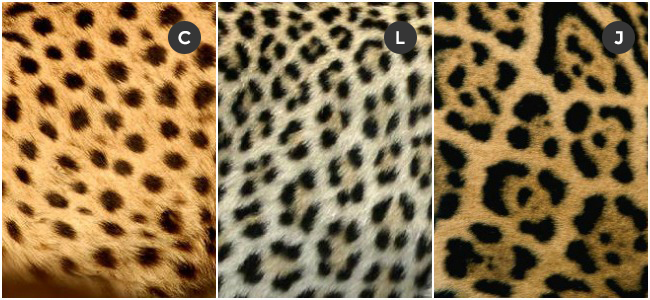 Let’s take a closer look at these three kinds of big cats again. Here’s the jaguar, for example: